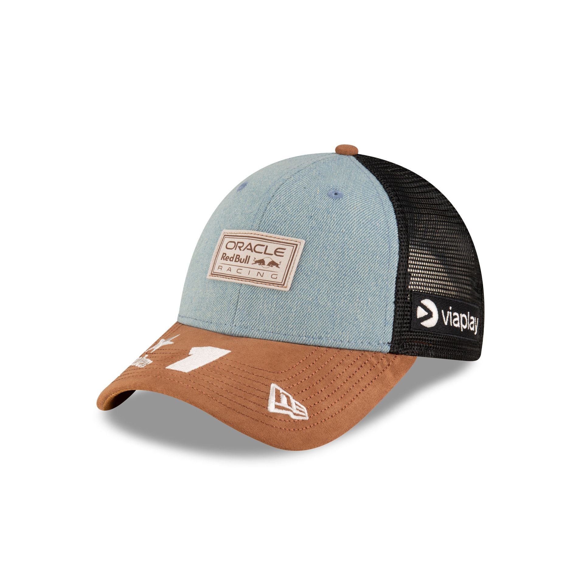 The 2024 Austin Race Special Max Verstappen Oracle Red Bull Racing 9FORTY Snapback features a woven Red Bull tag at the front panels against a denim fabrication and the driver’s number and sponsor on a faux suede visor. Additional details include a mesh back with sponsors and a snapback closure at the rear.