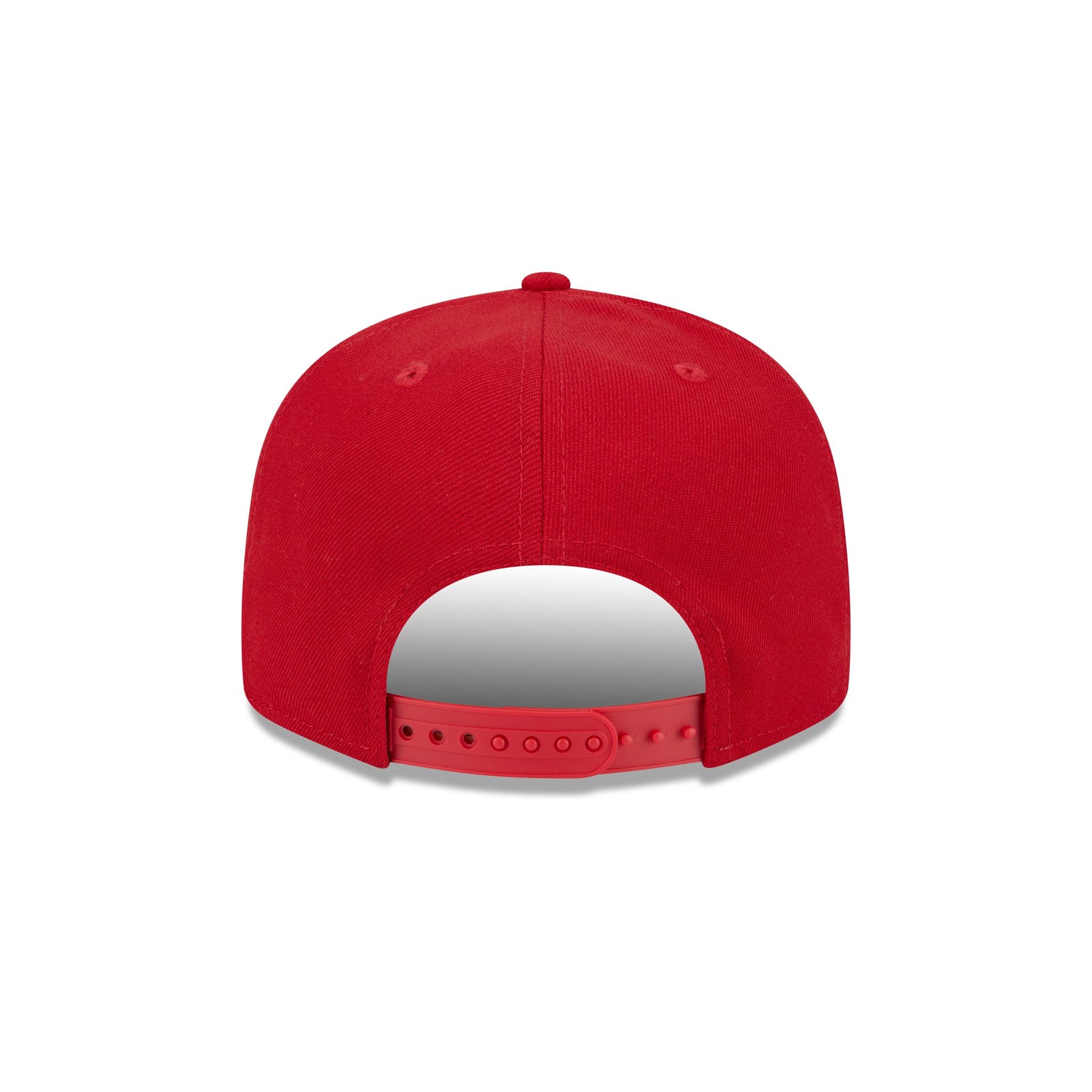 The Alpha Industries x San Francisco 49ers Red 9FIFTY Snapback features a chainstitch embroidered 49ers logo at the front panels with a 60 Seasons team patch at the right-wear side, a signature Alpha Industries red ribbon at the left-wear side, and a snapback closure at the rear.