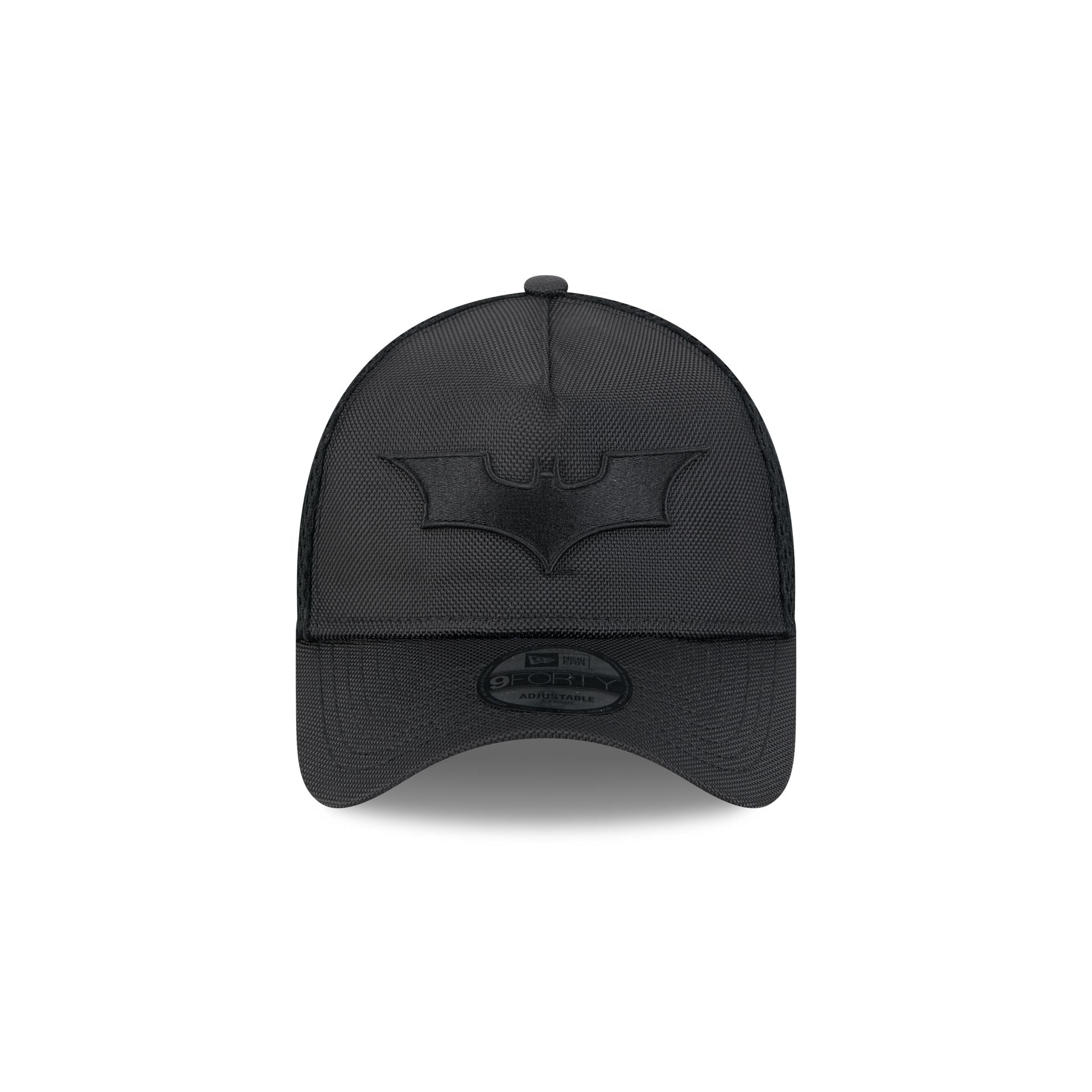 The Batman 9FORTY A-Frame Trucker features an embroidered Batman logo at the front panels with a mesh back and a snapback closure at the rear.