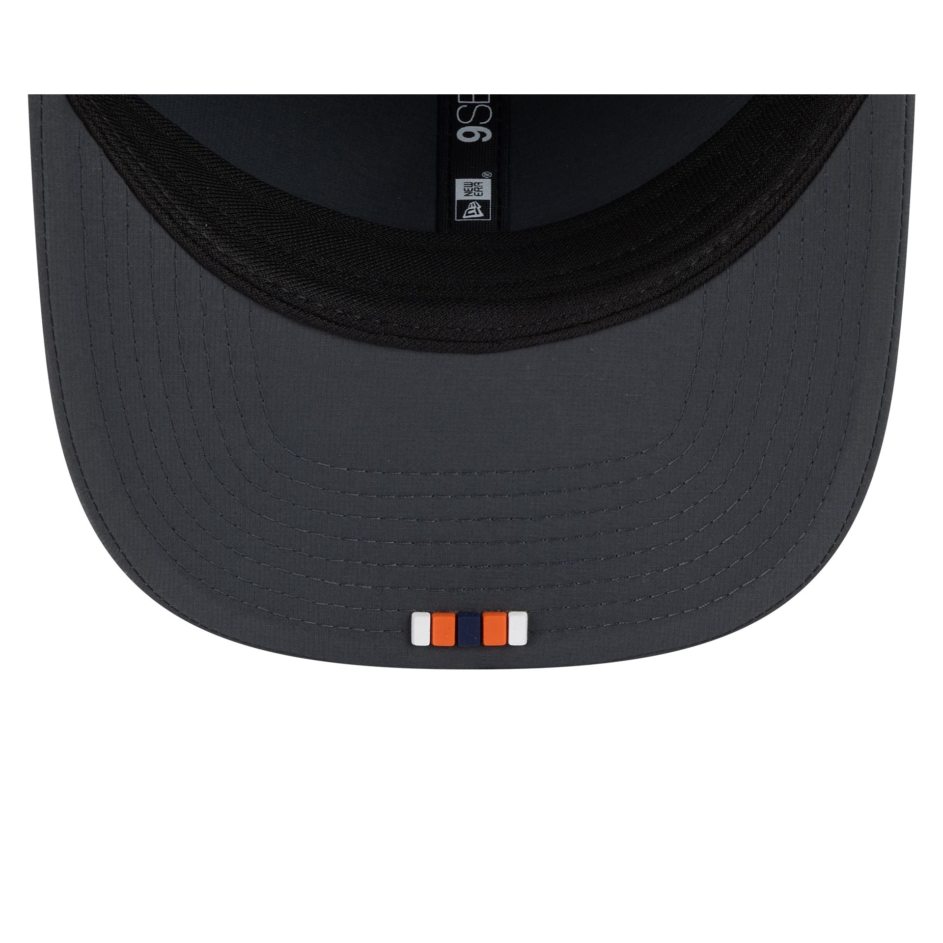 The Denver Broncos 2025 Sideline Cold Weather Steel Clouds 9SEVENTY Stretch-Snap features a sewn-down silicone Broncos logo patch at the front panels with a water-repellent quill tech fabrication throughout and an insulated crown with a quick-dry cushioned sweatband. Additional details include the Official NFL Shield logo to the right of a soft silicone snapback closure at the rear. The undervisor is accented with a silicone transfer in the team’s colors.