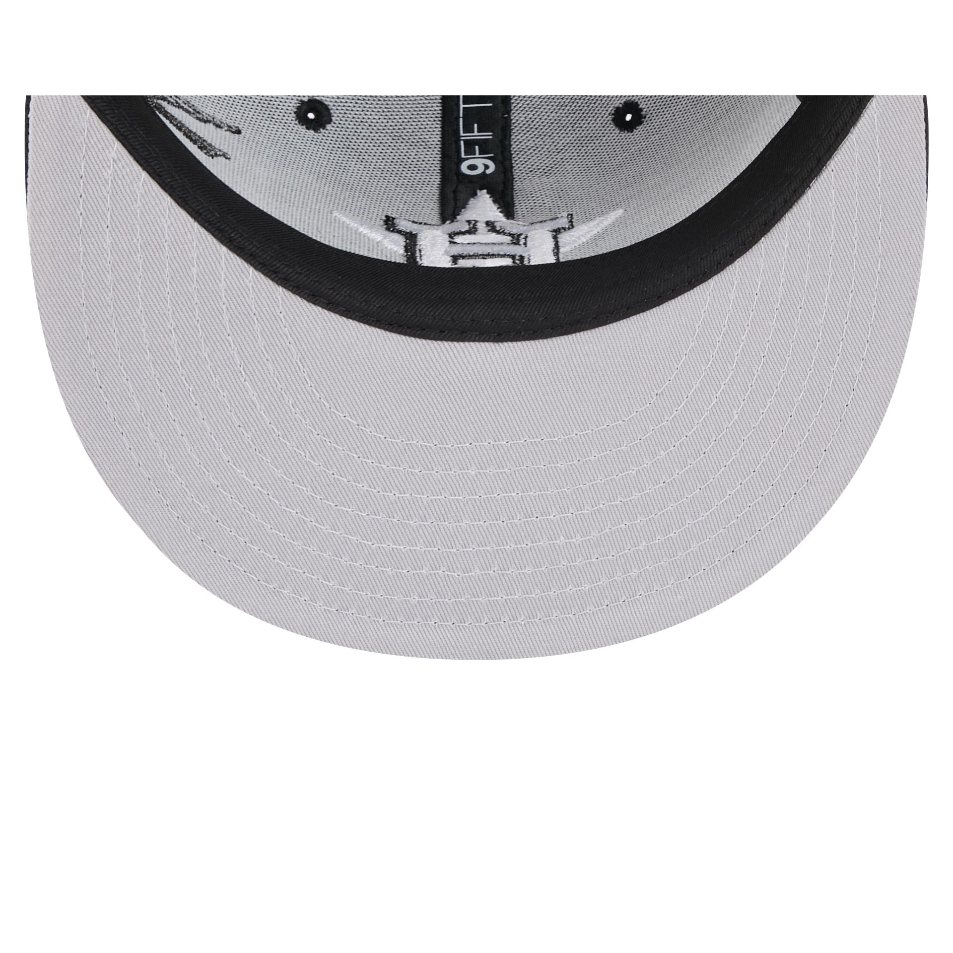 The Houston Astros City Art 9FIFTY Snapback features an embroidered Astros black and white logo at the front panels and an embroidered city banner with art at the right-wear side. Additional details include a snapback closure at the rear and a gray undervisor.