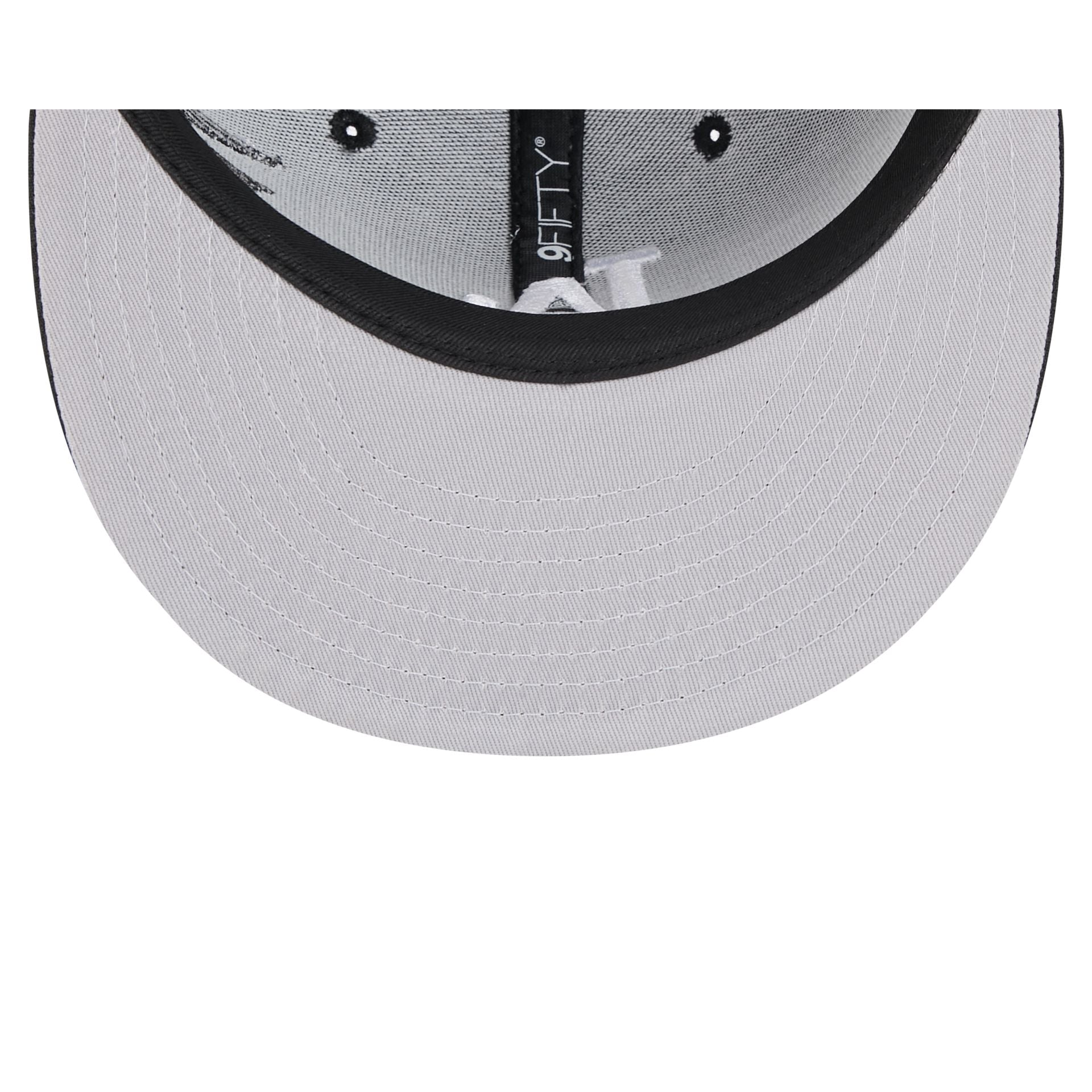 The Los Angeles Dodgers City Art 9FIFTY Snapback features an embroidered Dodgers black and white logo at the front panels and an embroidered city banner with art at the right-wear side. Additional details include a snapback closure at the rear and a gray undervisor.