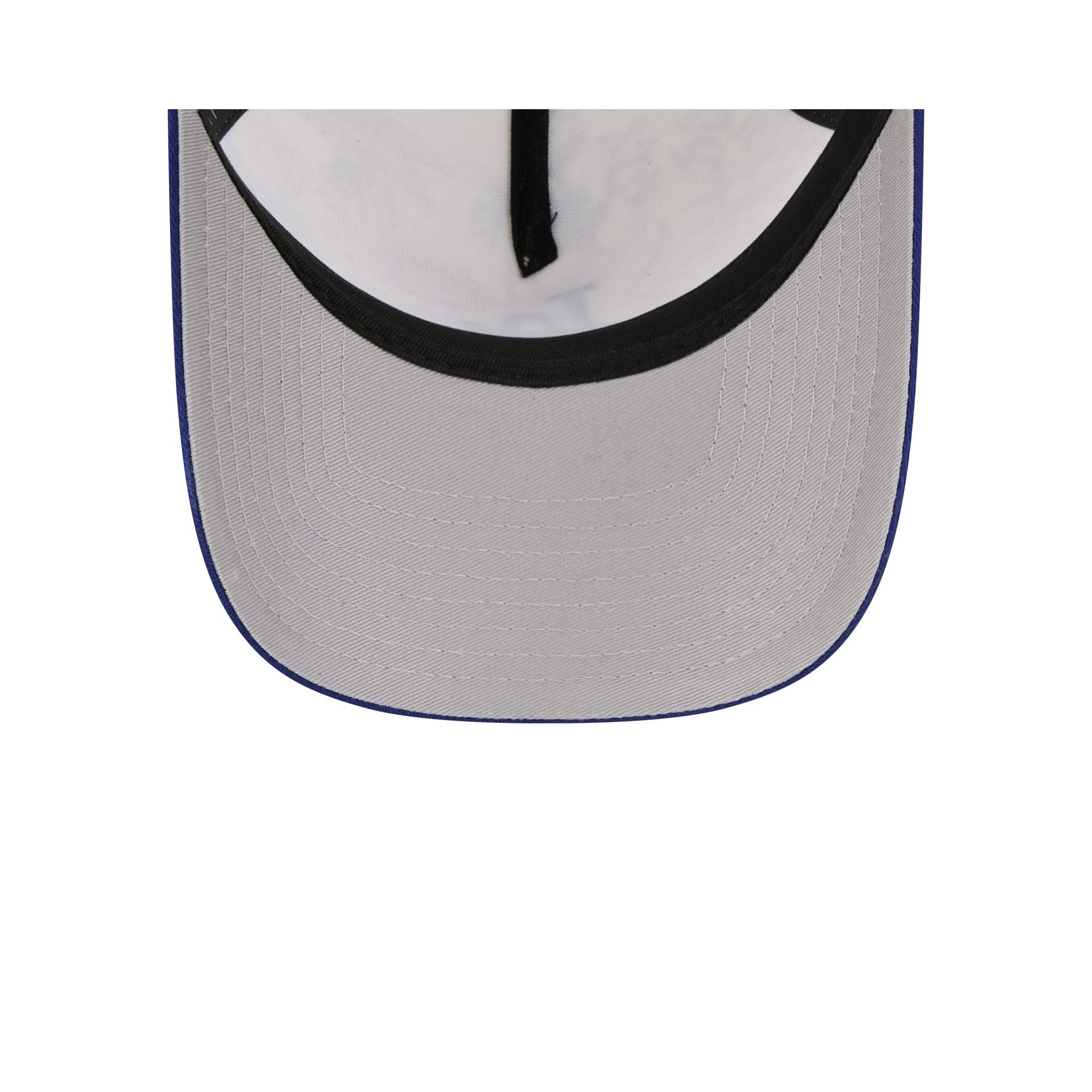 The Los Angeles Dodgers Spring Floral Blue 9FORTY A-Frame Snapback features an embroidered Dodgers logo at the front panel with a floral print cotton twill all over fabrication, an adjustable snapback closure at the rear, a blue visor, and a gray undervisor.