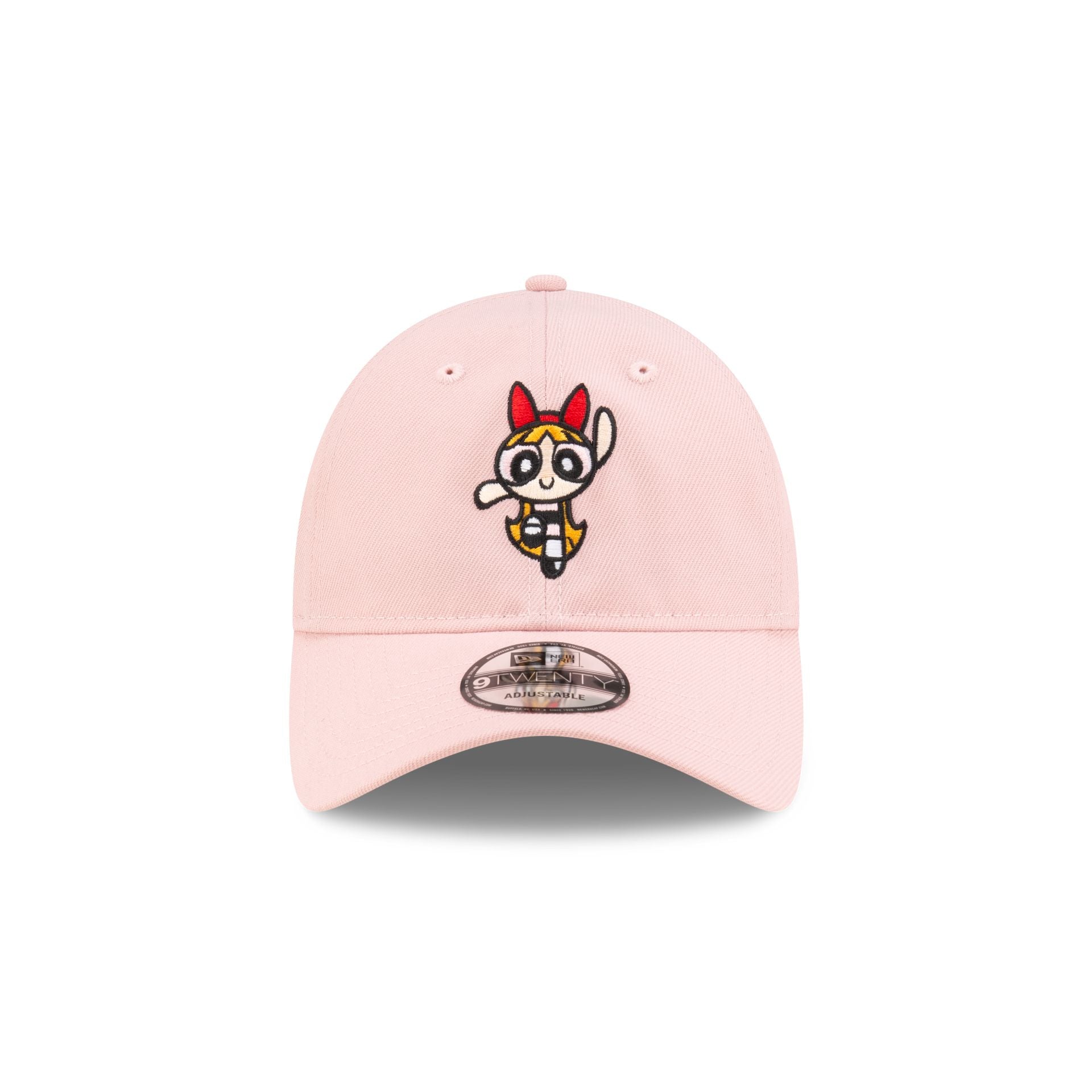 The Powerpuff Girls 25th Anniversary Blossom 9TWENTY Adjustable Cap features an embroidered Blossom logo at the front panels with a 25th Anniversary patch at the right-wear side and an adjustable D-Ring closure at the rear.